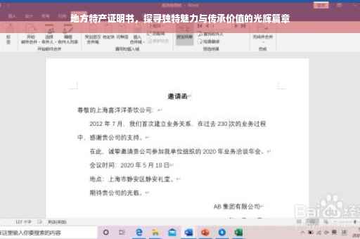 随着时代的发展,越来越多的人开始关注地方特色文化,探寻各地的独特魅力,特产作为地方文化的代表之一,承载着地域的历史、人文和风情,本文将带领读者一起了解特产证明书的重要性,探寻地方特产的独特魅力与传承价值,以及如何通过特产证明书推动地方经济的发展。