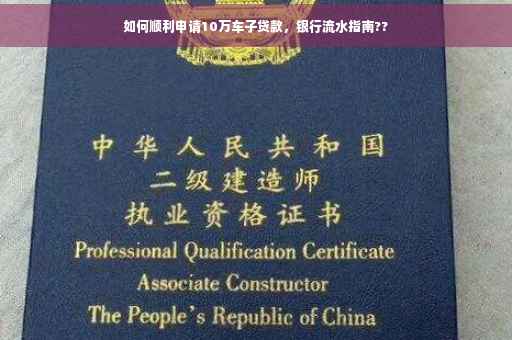 摘要:想要顺利申请10万车子贷款,银行流水是关键。了解银行流水要求,确保收入稳定且足够覆盖贷款金额。提前准备充足材料,包括收入证明、征信报告等,以提高贷款申请成功率。遵循银行流程,注意细节,如流水账单的完整性和真实性。遵循这些建议,将帮助您顺利申请车子贷款。
