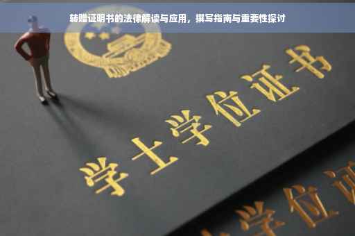 摘要:,,本文介绍了转赠证明书的撰写与应用,是一份重要的法律文件解读。转赠证明书是用于证明财产或权利转移的法律文件,具有法律效力。本文详细阐述了转赠证明书的撰写要点,包括证明书的格式、内容、签署等要求。本文还介绍了转赠证明书的应用场景,如房产、股权等财产转移情况。通过本文的解读,读者可以更好地了解转赠证明书的作用和重要性,以及在实际情况中的应用。