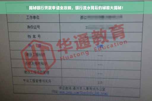 摘要:本篇全攻略将带你了解银行贷款申请的流程,深入解析银行流水背后的秘密。从申请前的准备到贷款审批的全过程,以及银行流水账单的重要性,都将一一揭晓。通过阅读本文,你将更好地把握贷款申请的要点,提高成功率,避免不必要的误解和困扰。
