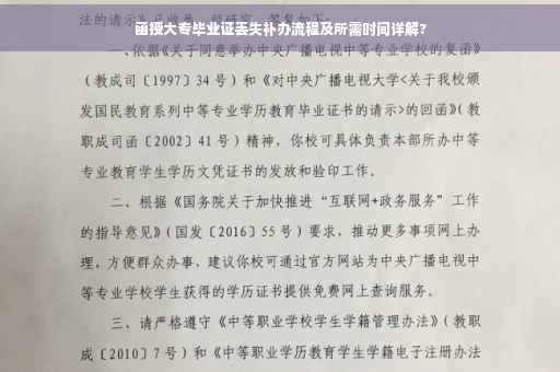 随着社会的不断发展,越来越多的人选择通过函授教育提升学历,有时由于各种原因,我们可能会遗失自己的毕业证,针对函授大专毕业证丢失的情况,本文将详细介绍补办流程、所需时间以及注意事项,以帮助大家尽快解决这一问题。
