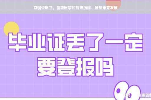 首钢证明书是一篇关于钢铁巨擘首钢的辉煌历程和未来展望的摘要。文章回顾了首钢的发展历程,包括其创立初期的艰辛和逐渐成长为钢铁巨头的历程。文章还展望了首钢的未来,探讨了其在钢铁行业中的地位以及未来的发展方向和潜力。首钢将继续发挥其在钢铁行业中的重要作用,推动行业的创新和发展。