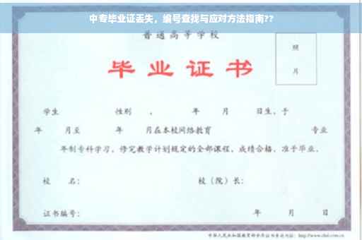 摘要:中专毕业证丢失后,查找毕业证编号并应对是关键。可通过原毕业学校、学籍档案或教育部门等途径查询编号。一旦确认丢失,应立即向原毕业学校或教育部门报告,申请补办或开具证明。保留好相关证明材料,以便查询和补办。丢失毕业证虽不便,但合理应对可解决问题。