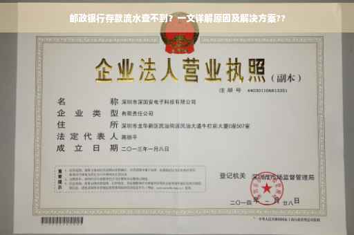 摘要:关于邮政银行存款流水查不到的问题,本文详细解析了可能的原因,包括系统故障、操作不当等。提供了相应的解决方案,如联系银行客服、检查账户状态、核实操作时间等。帮助遇到此类问题的用户快速找到解决方案,保障个人财产安全。