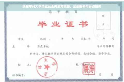 摘要:面对统招本科大学毕业证丢失的问题,首先需要冷静应对。可按照以下步骤行动:首先联系原毕业学校,获取相关证明或复印件;其次在媒体或官方网站发布遗失声明,避免被不法分子利用;同时向教育部门咨询补办毕业证的流程;准备好相关证明材料,按照流程申请补办。此文章将全面解析应对毕业证丢失的策略,提供实用的行动指南。