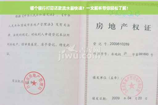 摘要:本文旨在解析哪个银行打印还款流水最快速。文章通过对比分析不同银行的打印流程、时间成本等因素,帮助读者了解各银行打印还款流水的速度和效率。阅读本文,您将了解到哪些银行在打印还款流水方面表现最出色,为您的财务事务提供便利。