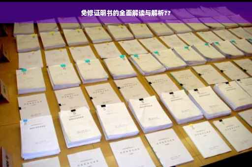 摘要:,,本文全面解析了免修证明书相关内容。免修证明书是一种证明学员无需参加特定课程学习的证明文件。本文介绍了免修证明书的定义、作用、申请条件及流程。通过解析,读者可以了解如何申请免修证明书,以及在不同情况下免修证明书的适用性和重要性。本文旨在为需要申请免修证明书的读者提供指导和帮助。