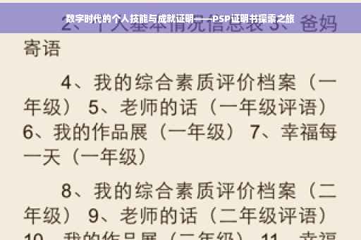 随着数字时代的快速发展,个人技能与成就的证明变得越来越重要,在这个竞争激烈的社会中,如何证明自己的实力和能力成为了每个人都需要面对的问题,PSP证明书作为一种新型的证明方式,正逐渐受到广泛关注,本文将详细介绍PSP证明书的概念、作用、获取方式以及其在个人发展中的应用价值。