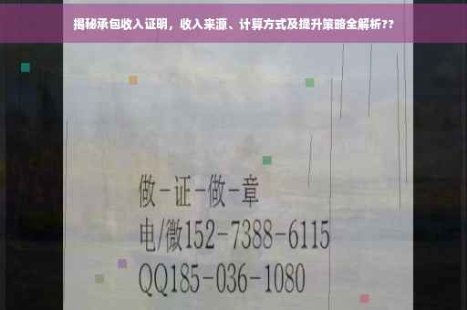 通过实际案例,详细分析承包收入的来源、计算方式以及提高收入的方法与策略的应用,某工程师通过提升专业技能、建立个人品牌等方式,实现收入的稳步增长,并提供真实的承包收入证明,成功获得资金支持,进一步扩大了业务规模。