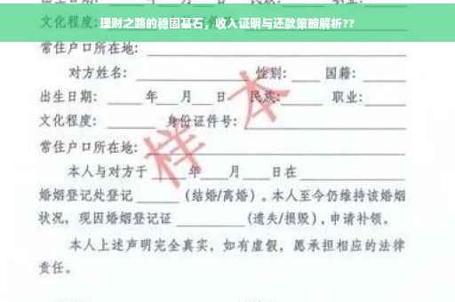 随着现代社会经济的蓬勃发展,个人财务管理变得日益重要,在这其中,收入证明与还款作为个人财务管理的核心环节,对于我们的经济生活具有至关重要的影响,本文将深入探讨收入证明与还款的意义、作用,并结合实际案例,为大家详细解析其中的要点。