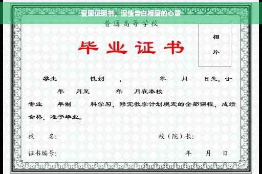 爱国证明书是一份表达个人对祖国的热爱和忠诚的深情告白。它代表着个人对祖国的感恩之心和对国家繁荣发展的坚定信念。这份证明书是对祖国深情表达的一种方式,体现了个人对祖国的敬仰和尊重。通过这份证明书,人们可以表达自己对祖国的热爱之情,以及对国家未来的美好憧憬和期望。