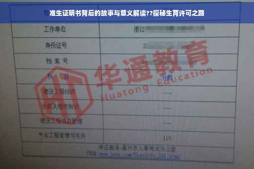 准生证明书,这一在中国特定历史背景下诞生的概念,与每一位公民的生育权利紧密相连,它不仅是一张简单的证明文件,更是中国社会制度与文化传统的体现,本文将带您深入了解准生证明书的背后故事,探寻其在历史、文化、社会背景下的意义与价值,以及在现代社会中的变迁与影响。