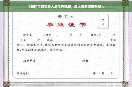 摘要:本篇内容主要关注民工的收入证明,通过揭示真实的收入状况和生存现状,旨在展现民工群体的实际生活情况。通过深入了解他们的收入水平、工作条件和生活环境,旨在呼吁社会更多地关注和关心这一群体的生存状况,推动社会公平与和谐发展。