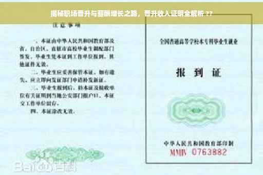 摘要:本文将为你提供关于职场晋升与薪酬增长之路的深入解析,特别是晋升收入证明的重要性。通过揭秘职场晋升的秘诀和薪酬增长机制,帮助你在职场中更好地把握机会,实现个人职业发展和收入提升。阅读本文,你将了解如何通过努力和能力展现,获得更高的职位和相应的薪酬回报。