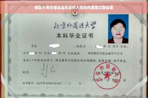 大家好!今天我要和大家分享一个关于部队大专毕业证丢失的故事,在这个充满挑战和机遇的时代,我们可能会遇到各种意外情况,其中之一就是珍贵的证件遗失,对于这位朋友来说,部队大专毕业证是他多年努力与付出的见证,却意外丢失了,让我们一起探讨面对这种情况时,应该如何重新找回人生航向。