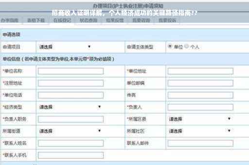在当今社会,越来越多的人开始关注个人经济独立和财务自由,作为自媒体作者,我深知招商收入证明对于个人经济成功的重要性,本文将为您详细解析招商收入证明的概念、作用以及获取方式,帮助您更好地打造个人经济成功。