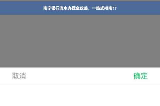 在南宁的朋友们,如果您需要办理银行流水,那么本文将是您的最佳指南,我们将详细解析银行流水的重要性,并为您提供办理地点、流程及注意事项,助您轻松了解并顺利办理银行流水。
