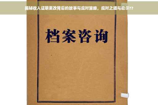 在现代社会中,随着经济的持续发展和就业市场的繁荣,收入证明已经成为了人们日常生活中的重要一环,无论是办理贷款、申请信用卡、租房还是其他场合,收入证明都是个人经济实力和信用状况的关键证明,有时,由于各种原因,我们可能需要更改收入证明,本文将深入探讨收入证明更改的原因、应对方法以及预防措施,帮助读者更好地了解和应对这一常见问题。