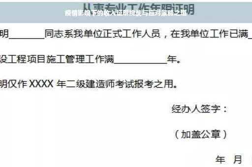 随着新冠疫情的蔓延,各行各业都受到了前所未有的冲击,许多企业和个人面临着前所未有的挑战,其中最为关注的问题便是收入问题,在这样的背景下,如何证明自己的收入状况,成为许多人关注的焦点,本文将围绕“疫情收入证明”这一主题,探讨当前形势下的收入证明问题,以及应对策略。