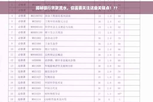 在申请银行贷款时,提供银行流水是证明自身还款能力的重要步骤,银行流水能够清晰地展现申请人的收入、支出以及财务状况,在银行贷款流水当中,究竟需要关注哪些部分呢?本文将为您详细解读。