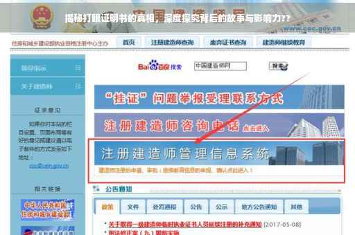 摘要:本篇内容将揭示打眼证明书的真相,深度解析其背后的故事与影响。文章将探讨这一事件的全过程,揭示其背后的原因和动机,分析其对相关方面产生的影响,以及可能引发的社会反响。文章还将探讨此类事件对于公众信息获取和信任度的影响,呼吁公众保持理性态度,审慎判断信息的真实性。