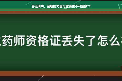 摘要:在这篇文章中,强调了寄证明书的力量和重要性。证明书的存在不仅是一份正式的证明文件,更是个人或组织信誉和实力的有力证明。通过寄送证明书,可以有效地展示个人成就、组织实力和信誉度,为个人职业发展、组织合作等提供重要支持。证明书在日常生活中的作用不可忽视,其力量和重要性愈发凸显。