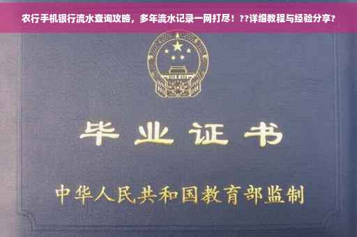 摘要:本文将分享如何查询农行手机银行多年的流水记录。详细教程包括登录手机银行、进入账户管理、选择查询时间段等步骤。通过本文,读者可以了解到查询流程,以及如何更有效地管理自己的账户流水。对于需要查看长时间交易记录的用户,本文提供了实用的经验分享。
