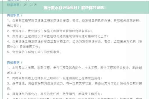 银行流水是否是当月的并非固定要求,具体取决于所办理的业务类型和金融机构的规定,在办理金融业务前,了解相关要求并准备充足的材料是至关重要的,保持良好的信用记录也是成功办理业务的关键,希望本文能为你解析关于银行流水的疑问,助你顺利办理金融业务。