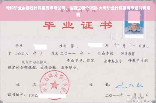 例如,从事机械工程的技术人员,也必须会使用计算机软件系统,他们必须通过某种级别的考试。你是计算机专业毕业,就不必参加这种考试。因为你的毕业证书和学位证书就说明问题了。建议:认真学好本专业内容,做好毕业设计,拿到学位证书(包括毕业证书),你就是一个合格的毕业生。1、全国计算机等级考试一级合格证书