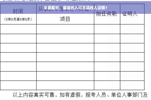 摘要:本文将详细解析哪些收入可以开具收入证明,包括但不限于工资、奖金、津贴、稿酬、租金收入等。本文将阐述各类收入的证明要求和注意事项,帮助读者了解在何种情况下可以获得合法的收入证明,并强调遵守相关法律法规的重要性。通过本文的阅读,读者将更清晰地了解哪些收入可用于开具收入证明,以便在日常生活和工作中更好地运用。