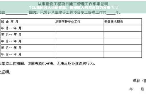 TCL集团收入证明解析:该证明详细展示了TCL集团的收入状况,包括各个业务板块的贡献和整体收入情况。通过这份证明,可以清晰地了解TCL集团在业务运营中的表现,以及其收入来源的多样性。这份证明对于了解TCL集团的经济实力和业务发展具有重要意义。