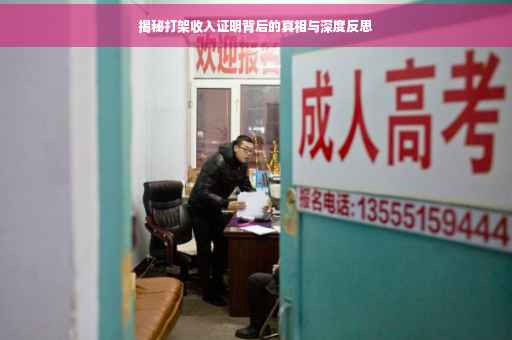 摘要:本文揭示了打架收入证明背后的真相,探讨了社会中存在的暴力事件与利益挂钩的现象。文章指出,一些人利用打架事件制造话题,企图通过炒作获取利益。对此,我们需要深刻反思,加强社会道德教育和法制建设,杜绝这种现象的发生,维护社会公正和良好秩序。