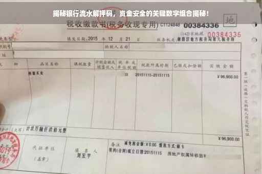 摘要:本文将揭示银行流水解押码的重要性,这是一组关乎资金安全的关键数字组合。通过深入了解解押码的作用,提醒广大民众在涉及银行流水等金融操作时,务必注意保护解押码,确保个人资金安全。此文旨在提高公众对金融安全的认识,防范潜在风险。