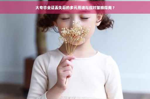 摘要:大专毕业证丢失后,不必过于担心。除了补办证明文件外,还可以利用其多元用途如提升学历、参加职业培训、积累工作经验等应对。丢失毕业证后,应保持冷静,采取积极措施,根据个人情况选择合适的应对策略,继续追求个人发展。