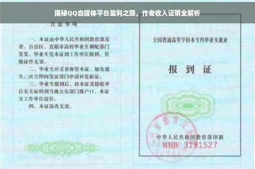 随着互联网的发展,自媒体行业迅速崛起,越来越多的人加入到自媒体行业中,希望通过创作内容实现自己的价值,QQ自媒体平台作为其中的佼佼者,以其庞大的用户基数和精准的推荐算法,吸引了大量创作者入驻,本文将深入探讨QQ自媒体作者的收入证明问题,带您了解这一平台的盈利之路。
