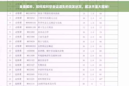 在我们的人生旅途中,毕业证是一份非常重要的证件,它代表着我们的学业成就和学历,有时候意外情况会发生,比如我们的毕业证遗失了,面对这种情况,我们该如何应对呢?本文将为你提供一份全面的解决方案,帮助你找回遗失的毕业证,或者通过相应的措施尽量减少损失。