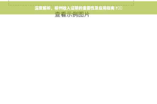 摘要:本文将深度解析柳州收入证明的重要性及其实际应用。收入证明在柳州具有举足轻重的地位,它不仅是个体经济能力的体现,也是个人信用评估的重要依据。本文将详细介绍收入证明在求职、贷款、租房等方面的实际应用,并强调其对于个人信用建设的重要性。通过本文的阐述,读者将更全面地了解柳州收入证明的作用和价值。