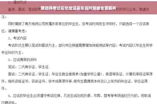 是本文关于“建造师考过了毕业证丢了怎么办”的全面解析,希望能对您有所帮助,遇到类似问题时,请保持冷静,积极应对,寻求帮助并解决问题。