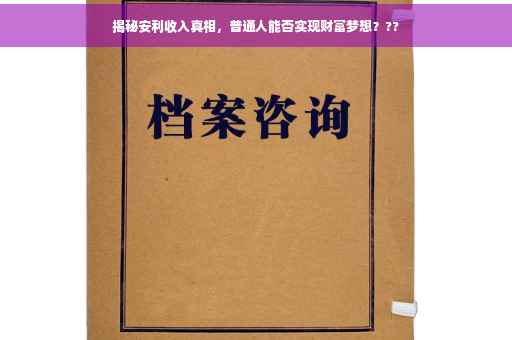 摘要:本文将揭示安利收入的真相,探讨普通人是否能在安利实现财富梦想。通过深入了解安利的商业模式、产品特点以及收入构成,我们将分析普通人参与安利的机会和挑战,并揭示成功的关键因素。帮助读者理性看待安利,做出明智的决策。
