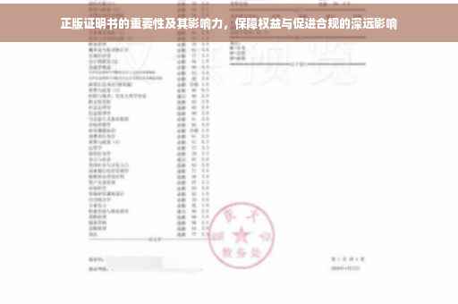 在当今数字化时代,随着信息技术的迅猛发展,版权问题日益凸显,正版证明书作为版权保护的重要工具,对于维护知识产权、鼓励创新创作、促进文化产业发展具有重要意义,本文将详细介绍正版证明书的作用、影响以及相关信息,以提高公众对版权问题的认识,共同维护良好的版权环境。
