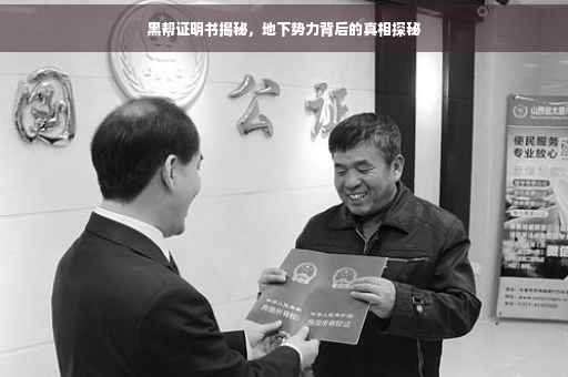 摘要:黑帮证明书是一份揭示地下势力背后真相的重要文件。它详细记录了黑帮组织的运作方式、成员构成以及犯罪活动等内容。通过这份证明书,我们能够了解到黑帮组织如何渗透社会的各个领域,以及他们如何操纵地下经济、进行非法交易等。这份证明书为我们揭示了黑帮的真实面目,有助于我们更好地认识并打击地下势力,维护社会的安全和稳定。