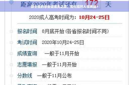 摘要:面对人生中一大挑战,硕士生的本科毕业证遗失问题,需要冷静应对。应立即联系原颁发学校,获取相关证明文件或复印件。积极寻求学校或教育部门的帮助,了解补办流程。保持积极心态,不因证件遗失而丧失信心。人生路漫漫,需勇敢面对挑战,克服困难,继续前行。