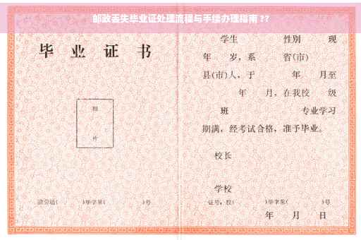 摘要:遇到邮政丢失毕业证的情况,应立即向邮政部门查询并保留相关证据。确认丢失后,应前往毕业院校或相关教育部门咨询具体办理手续。需携带身份证、学生证等证明身份的材料,填写毕业证遗失声明或相关申请表格。根据学校要求,可能还需在媒体上发布遗失声明。手续办理完毕后,可得到毕业证明或毕业证补办证明。具体流程可能因学校或地区而异,建议咨询相关部门获取准确信息。