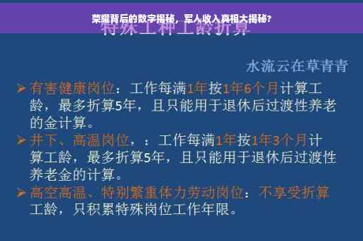 摘要:本文将揭示军人收入证明的真实情况,探寻荣耀背后的数字真相。通过深入了解军人的薪资结构、福利待遇以及收入差异,我们将一起探讨军人收入的真实面貌,展现军人职业背后的不易与付出。阅读本文,你将更全面地了解军人的收入情况。