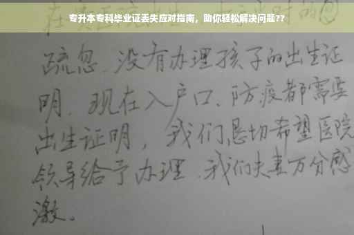 对于许多即将步入社会或继续深造的同学来说,专升本专科毕业证丢失无疑是一场突如其来的困扰,不过,不必过于焦虑,本文将为你提供详尽的指南,助你从容应对这一问题,从报案到补办流程,再到预防措施,我们为你一一解析。