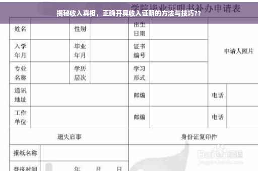 摘要:本文将揭示收入真相,教你如何正确开出收入证明。通过深入了解收入证明的重要性,我们将探讨如何准确、合法地展示自己的收入水平,包括薪资、奖金、津贴等各方面的收入来源。本文还将提供一些建议和注意事项,帮助你在开具收入证明时避免误区,确保顺利达成目标。阅读本文,将让你对收入证明有更清晰的认识,为你的个人发展助力。