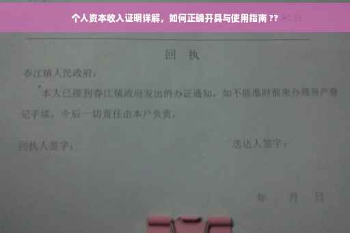 在当今社会,随着财富的积累与个人经济实力的提升,个人资本收入证明的重要性日益凸显,作为个人财务状况的关键凭证,它在贷款申请、商务合作以及职场竞争等多个领域都发挥着举足轻重的作用,本文将全面解析个人资本收入证明的功能、开具流程,以及使用时的注意事项,帮助读者更好地理解和运用这一概念。