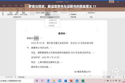 梦境中的宣告书和证明书,往往具有隐喻作用,它们所代表的含义,可能与现实生活中的事件、情绪以及心理需求密切相关,通过对梦境的分析,我们可以更好地了解个人的内心世界和现实生活中的状况。