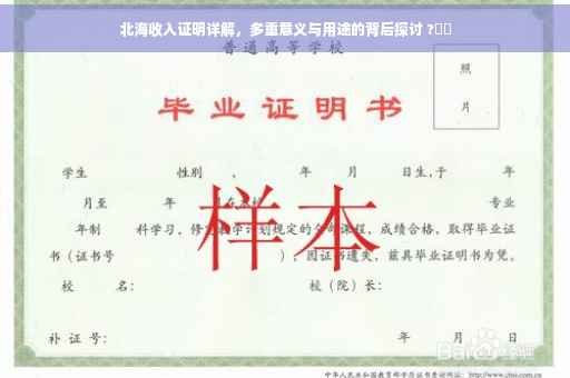 摘要:本文将详细介绍北海收入证明的含义、多重意义及用途。通过这份证明,不仅能了解个人的经济状况和收入水平,还可在多个场合发挥作用,如贷款申请、房屋租赁、就业应聘等。本文将全面解读北海收入证明的重要性,并帮助读者了解如何利用这份证明满足不同的需求。