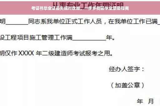 摘要:面对考证书毕业证丢失的困扰,不必慌张。可以通过以下攻略找回学业荣誉。立即前往原颁发学校或相关机构,咨询证书丢失事宜。准备相关证明材料,如身份证、学历证明等,以便进行身份核实。按照学校要求填写丢失证明并申请补发证书。耐心等待审核结果,并遵循学校指示完成后续手续。遵循此攻略,一步步找回你的学业荣誉。